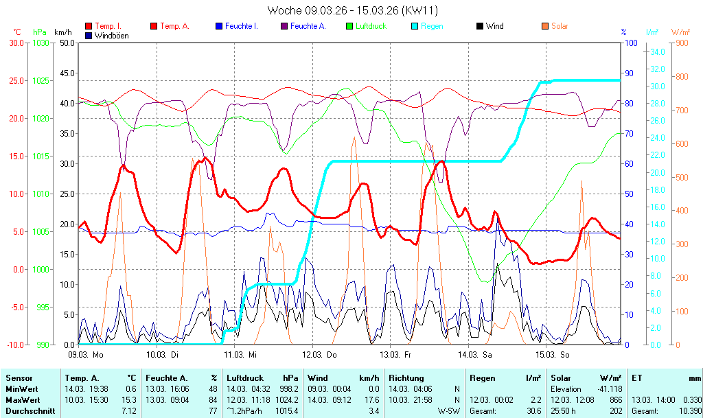 Max.(09:12) SW 17,6 km/h (3 Bft) |